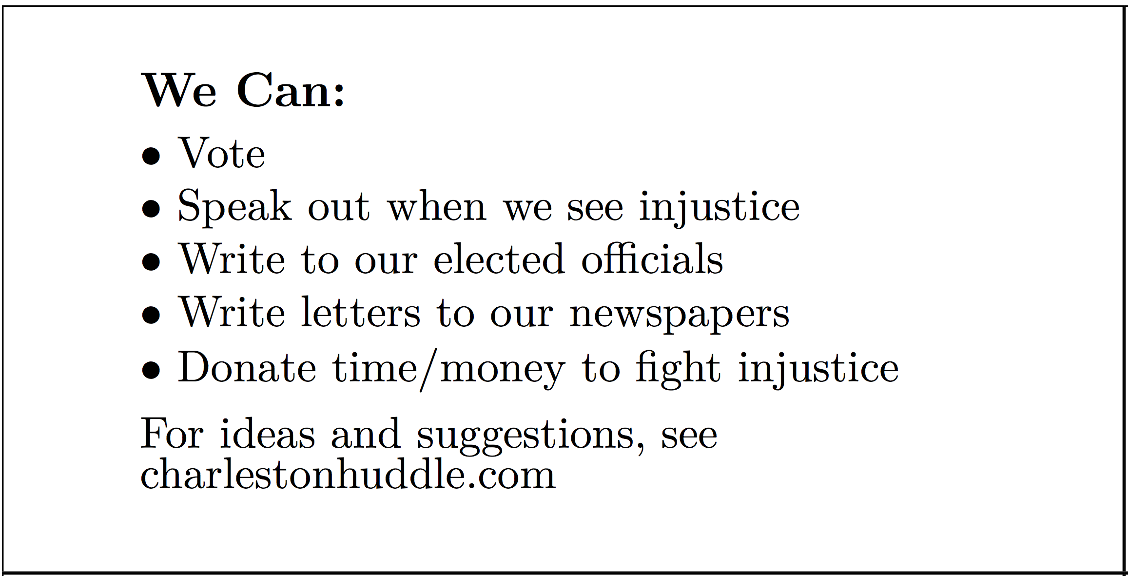 We have also made up a little card that we can hand people if they want to know what they can do. If you are interested, you may download the pdf file below that is a page of such cards that can be printed on cardstock and cut to size.